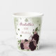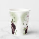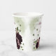 Romantische Blume in Rosa und Pflaumenbordeauxrot mit grünen Blätter botanischer Party-Papiertasse.