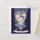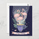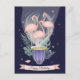Schönes pinkfarbenes Flamingo-Teatime, elegantes sehr peri Teakup und tropische Pflanze und Blätter kaukale Illustration ergänzt durch tiefblaues Hintergrund mit leuchtenden Sternen.