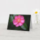 Original-Kunstwerk mit meinem Originalfoto einer hübsch rosa Kamelien-Blume in Blüte, nach einem leichten Regen und die Regentropfen halten an den Blättern. Die leuchtend rosa Farbtöne dieser Blume machen es zu einer einzigartigen Kunstkarte, die man jedem schicken kann. Die Karte ist innen leer, damit Sie Ihre persönlichen Briefe und Notizen schreiben können.