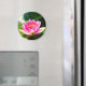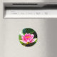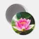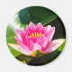 Dieser Kühlschrankmagnet zeigt ein Originalfoto einer wunderschönen rosa Seerosenlilie in einem kleinen Teich in Italien.