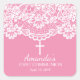 Schöne rosa Spitze-erster heilige Quadratischer Aufkleber