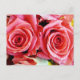 Diese Postkarte zeigt ein Foto von zwei farbenfrohen rosa Rosen, umgeben von anderen Blume. Die Rückseite der Postkarte zeigt dasselbe Foto, aber heller, um Ihre Nachricht anzuzeigen.