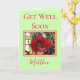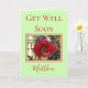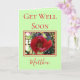 Mit einem schönen hellgrünen Hintergrund zeigt diese individuell gestaltete Grußkarte oben im roten Schriftart "Get Well bald". In der Mitte befindet sich ein schönes Bild einer rote Rose in einem Garten. Unter dem Foto ist der Name Ihres Liebsten in einem hübschen kursiven Schriftart ausgestellt. Die Innenseite der Karte teilt eine besondere Botschaft der Ermutigung. Original Artwork: © 2016, Rhonda Jones
