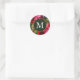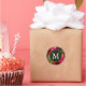 Schöne Rote Blüte mit Monogramm Grünen Weihnachten Runder Aufkleber