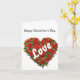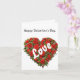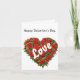 Diese klassische Valentinstag-Karte verfügt über ein Herz aus rote Rosen auf einem weißen Hintergrund mit dem Wort Liebe. Einfach schön.