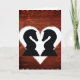 Diese schöne und einzigartige Valentinstag-Karte ist Schachtheorie mit zwei schwarzen Rittern vor einem weißen, bemalten Herz auf einem tiefen roten Hintergrund.