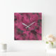 Schöne Schmetterlinge auf rosa Leaf-Muster Quadratische Wanduhr