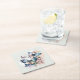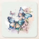Papier Untersetzer mit einem Trio von Schmetterlingen, die zwischen einigen hübschen Blume flattern. Die Farbe Blau Rosa und Grün.