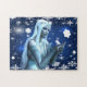 Die schöne Schneekönig grüßt eine kleine weiße Maus an einem schneebedeckten Wintertag.