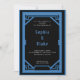 Schöne Schwarz und Blau Art Deco Hochzeit Einladung