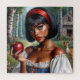 Im Puzzle findet man Ölgemälde einer großartigen, braunhäutigen schwarzen Frau, die einen Apfel hält. Sie trägt einen roten Lippenstift, ein rotes Kopfband im Bob-Haarschnitt, und ein Bauernkleid in einem Wald mit einem Hirsch im Hintergrund. Hyperfeminine Melanin-Kernästhesie. Märchenhafte Cosplay-Kunst von Dee Claire.