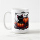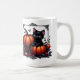 Schöne schwarze Kätzchen mit Kürbiskuiten Kaffeetasse