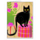 Eine hübsche schwarze Katze auf einem rosa karierten Tisch mit Hauspflanzen KI generiert Kunst