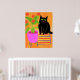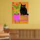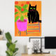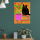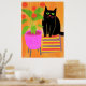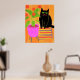 Schöne schwarze Katze mit Hauspflanzen Poster