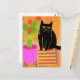 Schöne schwarze Katze mit Hauspflanzen Postkarte