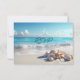 Hübsches Bild eines Strandes mit wunderschönem weißem Sand, sanften Wellen und türkisfarbenem Wasser, Sand Dollars und Starfish RSVP Karte.