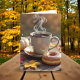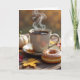 Behalt in Touch mit einem Freund und schicke ihnen Herbstsegmente mit dieser schönen Karte, die die Saison feiert. Die Karte hat eine wunderschöne Herbstszene mit einer Tasse warmen Kaffees und verglasten Donut sitzend neben einem weißen Kürbis und Herbstlauben.