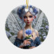 Eine wunderschöne blauhaarige Fee mit silbernen Flügeln, die ein hübsches blaues Kleid und Saphir-Schmuck tragen, hält einen Single aster, während stehend in einem Asteroidenfeld. Der Text kann leicht geändert oder gelöscht werden, wenn Sie das Bild ohne Text wünschen.