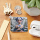Eine wunderschöne blauhaarige Fee mit silbernen Flügeln, die ein hübsches blaues Kleid und Saphir-Schmuck tragen, hält einen Single aster, während stehend in einem Asteroidenfeld. Der Text kann leicht geändert oder gelöscht werden, wenn Sie das Bild ohne Text wünschen.