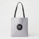 Schöne silberne gepunktete Wavy Linien auf hellsilberem Hintergrund. Diese schöne Tasche hat ein schwarzes großes Punktbild mit M-Buchstaben in der Mitte.