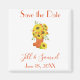 Schicken Sie diesen lieblichen Magneten, um Ihr Hochzeitsdatum anzukündigen. Ein Sonnenblumenmotiv-Design, es ist ein gelbes Sonnenblumendesign in einem Polka Dot Orange und Weiß Stiefel, verwenden Sie die Vorlagen, um Informationen auszufüllen. Personalisieren Sie Ihre heutige!