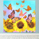 Erweitern Sie Ihre Wohngestaltung mit einem maßgeschneiderten Wandgemälde-Leinwand. Schöne Sonnenblumen und Schmetterlinge flutter in einem Blumengarten Canvas Print. Tolle Geschenkidee.