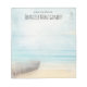 Ein Notizblock mit einem schönen rustikalen Bild. Feine Farben von hellblau, sandig braun und sanft weiß. Eine Strandszene mit einem Boot am Ufer und einem verblassten Leuchtturm in der Ferne mit Vögeln, die herumfliegen. Ein eleganter, schäbiger Look.