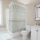 Schöne, subtile, weiße Lacktextilien nah. Duschvorhang