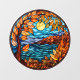 Schönes rundes Fensterheber für Zuhause- oder Geschäftsvorstellungen AI generierte Buntglasfallszene mit Herbstblättern, Wasser und Klippen in der Ferne. Eine großartige Ergänzung zu Ihrem saisonalen Dekor.