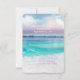 Rosa und lavender Sonnenaufgang Himmel mit puffigen Wolken, der Sonnenaufgang beginnt gerade zu reflektieren auf den Ozeanwellen. Hübsche Korallen, offene Auster mit Perle innen Akzent dieser Einladung Design. Das elegante tropische Küstengebiet eignet sich für eine perfekte Hochzeit am Strand oder für eine Hochzeit auf der Insel.