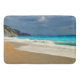 Eine Badematte mit einem schönen Foto mit einem türkisblauen Meer und einem Sandstrand mit Wellen von schaumigem Surfen.