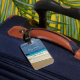 Personalisiertes Gepäckschild mit einem schönen Foto mit einem türkisblauen Meer und einem Sandstrand mit Wellen von schaumiger Surf.