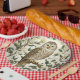 Eine atemberaubende Uralkugel, umgeben von zarten Magnolienblüten, Set vor einer ruhigen Kulisse. Diese eleganten Teller verleihen jedem Fest oder jeder Ansammlung eine Touch des Naturcharmes!