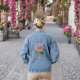 Schöne, Vintage Pink Peony und Monogram Name Jeansjacke