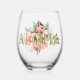 Aloha stemloses Weinglas mit Aquarelltänzerin und Imitaten Goldschrift und Plumeria.