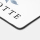 Hübsches und elegantes Tischmatte-Design mit hellrosa Aquarellfarben, blauem und grauem Blattwerk auf weißem Hintergrund. Text kann geändert werden.