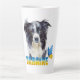 Eine schöne Art für Tierfreunde, ihre Unterstützung für die Ukraine zu zeigen. Hübsche latte Tasse mit Aquarellhund Border Collie mit "Ukraine"-Text und Schmetterling in den blauen und gelben Farben ihrer Nationalflagge auf gelbem Hintergrund.