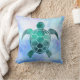 Schöne aquamarine Meeresschildkröten-Silhouette auf einem hellblauen und rosa abstrakten Aquarell.