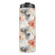 Schöne weibliche Pfirsich Blau und Weiß Blumen Thermosbecher