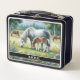 Schöne Weidepferde personalisierte Lunchbox mit einem anderen Bild vor und zurück, bearbeiten Sie den Namen selbst, wenn Sie bestellen.