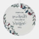 Erste Weihnachten als Mr. & Mrs. Weihnachtsschmuck personalisiert mit Ihrem gemeinsamen Nachnamen mit dem Jahr gerahmt von hübschen Weihnachtssträuchern in Weiß, Rot, Blau und Grün.