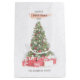 Schöne Aquarellkunst Weihnachtsbaum mit phantastischer Weihnachtsdekoration, ein Haufen Weihnachtsgeschenke und schneegraue Farbenstriche mit einem fröhlichen Weihnachtswunsch. Schönes Weihnachtsgeschenk Kunst Design. Personalisieren Sie Ihre Touch, indem Sie den Wunsch, das Jahr und die Familienname ändern oder Ihre eigene anpassen.