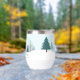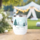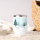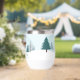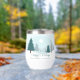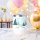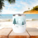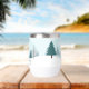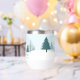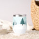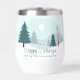 Eine wunderschöne Winterlandschaft mit aquamarinen grünen Pinienbäumen und schneebedecktem Boden auf einem personalisierten Urlaubsweingeschenk. Passen Sie die Happy Holidays Geschenke für Ihre Firmenkunden oder Mitarbeiter an.