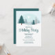 Eine wunderschöne Winterlandschaft mit aquamarinen grünen Pinienbäumen und schneebedecktem Gelände auf personalisierter Feiertagseinladung. Passen Sie diese Weihnachts-Party mit Ihren eigenen Details unter der eleganten kursiven Skript.