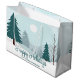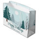 Eine wunderschöne Winterlandschaft mit aquamarinen grünen Kiefern und schneebedecktem Boden auf personalisierten Feiertagsgeschenktaschen. Passen Sie diese Happy Holidays Geschenktasche für Ihre Firmenkunden oder Mitarbeiter an.