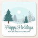 Eine wunderschöne Winterlandschaft mit aquamarinen grünen Pinienbäumen und schneebedecktem Boden auf personalisierten Untersetzer. Passen Sie dieses Happy Holidays Geschenk für Ihre Firmenkunden oder Mitarbeiter an.