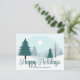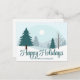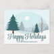 Eine wunderschöne Winterlandschaft mit aquamarinen grünen Kiefern und schneebedecktem Boden auf personalisierten Visitenkarten. Passen Sie diese Firma Happy Holidays Postcard mit Ihrer eigenen Corporate Message auf der Rückseite in elegantem kursiven Skript an.
