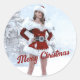 Schöne Weihnachtsfrau über den Winterschnee Runder Aufkleber