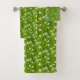 Schöne weiße Blume auf Blätter der grünen Pflanze Badhandtuch Set