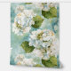 Ein wunderschönes minimalistisches Aquarelldesign der weißen Hydrangea auf blauem Hintergrund.